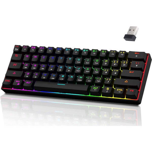 • 💡【Alta calidad y material】Está hecho de material ABS de alta calidad, pesa más de 1060 gramos, tiene una gran durabilidad, teclas secundarias moldeadas por inyección de PBT, tamaño mini y diseño ergonómico, maquinaria que ahorra espacio de 61 teclas El diseño del teclado se libera su espacio de trabajo en el escritorio sin sacrificar el rendimiento y la comodidad del juego