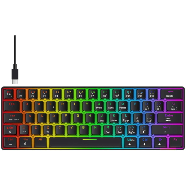 [Diseño mínimo y compacto de 62 teclas] El teclado mecánico 60% tiene un tamaño pequeño, una apariencia hermosa, una estructura resistente y funciones poderosas. Es muy adecuado para uso en el hogar y la oficina. No hay teclado numérico, lo que es más conveniente para jugadores y mecanógrafos y libera más espacio para su escritorio.