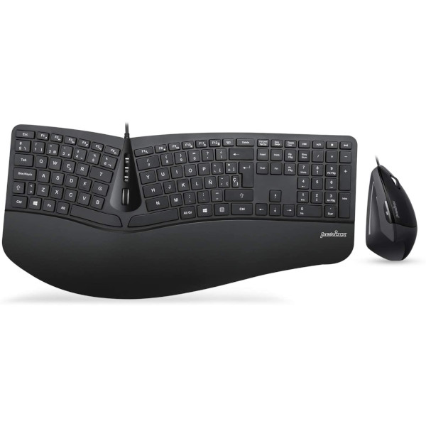 Ratón Vertical: Ratón con cable, diseño Vertical Ergonómico con 5 botones y Resolución ajustable de 1000 / 1600 DPI; Largo del cable del Teclado y del Ratón 1,8m.