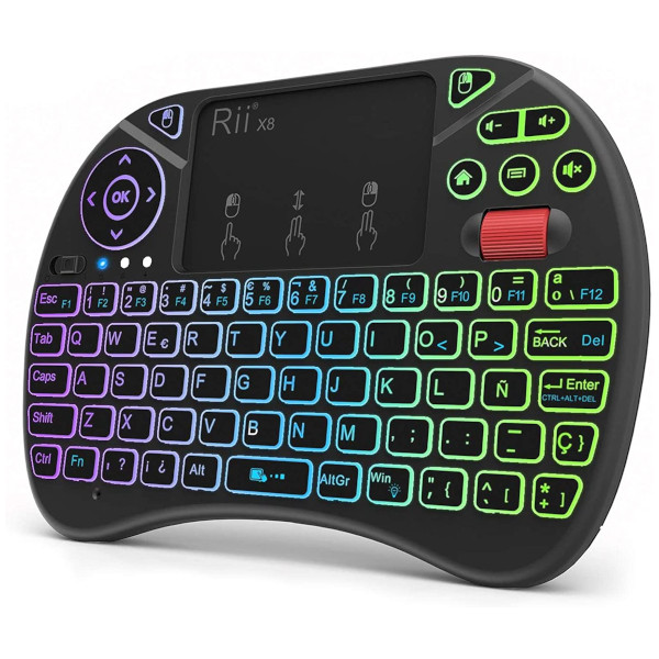 • Rii X8 2.4GHz Mini teclado inalámbrico QWERTY Español con Touchpad, LED retroiluminado con receptor de interfaz USB